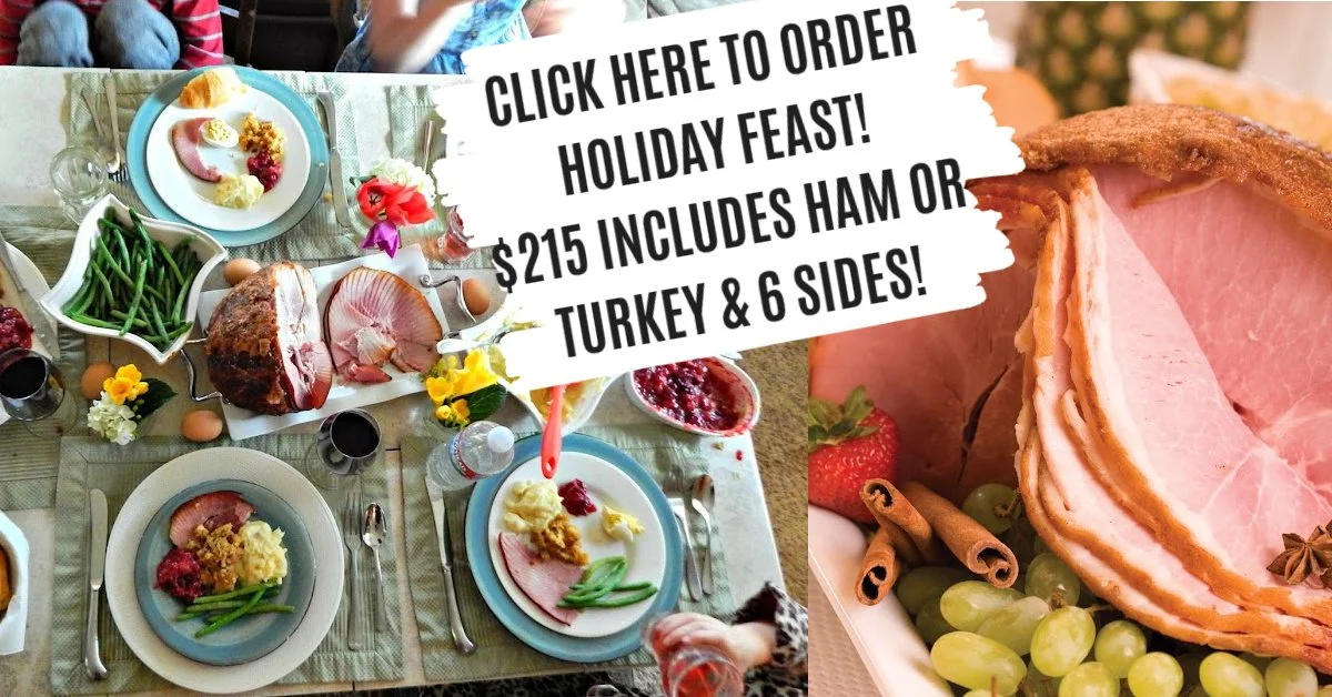 Every Thanksgiving, Christmas, & Easter we offer an exclusive dinner that will feed a family of 6-8 people for only $215.